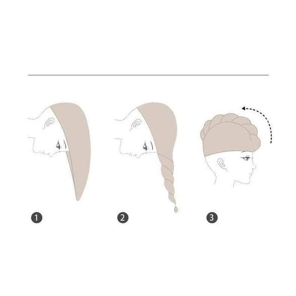Bước 2: Trùm khăn lên khít đầu, sao cho khăn ôm sát lấy tóc.