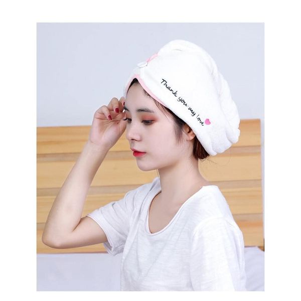 🛁Khăn được thiết kế hình mũ ôm sát đầu và có nút cài tháo dễ dàng, nên rất dễ sử dụng