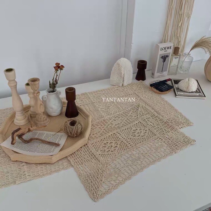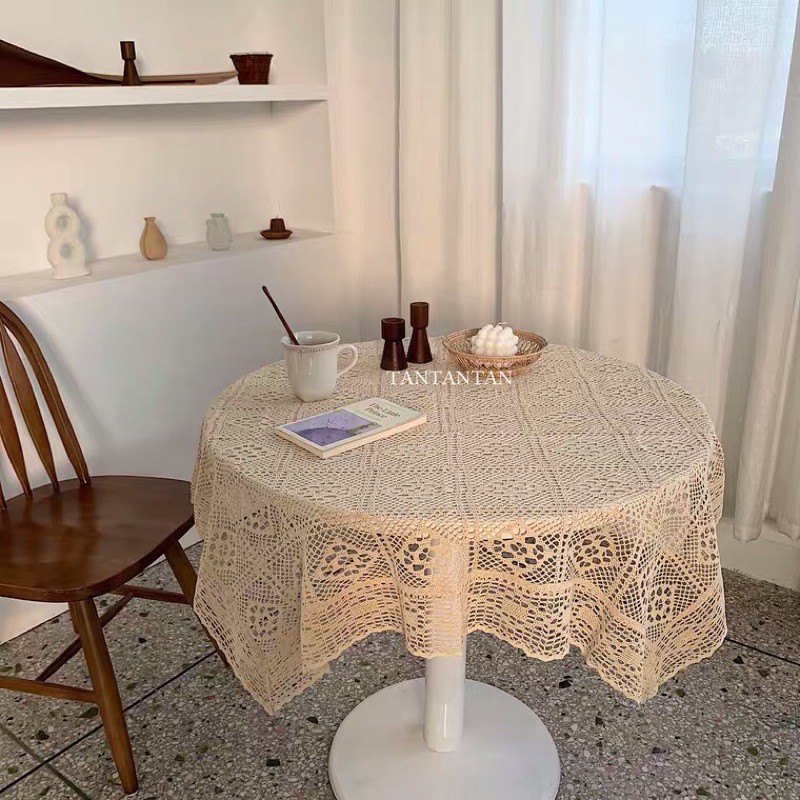 TAN!INS Khăn ren trải bàn/Decor trang trí nhà/Làm vải phủ hoặc nền chụp ảnhKhăn trải bàn ren móc kiểu vintage rất ấm áp và có màu be. Kết cấu sợi bông dệt. Khăn trải bàn dễ giặt sạch và không dễ nhăn. Kiểu dáng rỗng cũng rất tốt để làm vải phủ hoặc nền chụp ảnh vải!