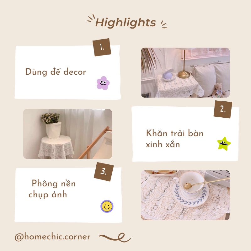 Giới thiệu Khăn ren trải bàn, khăn trải bàn ăn, tab decor chụp ảnh | HOME CHIC CORNER