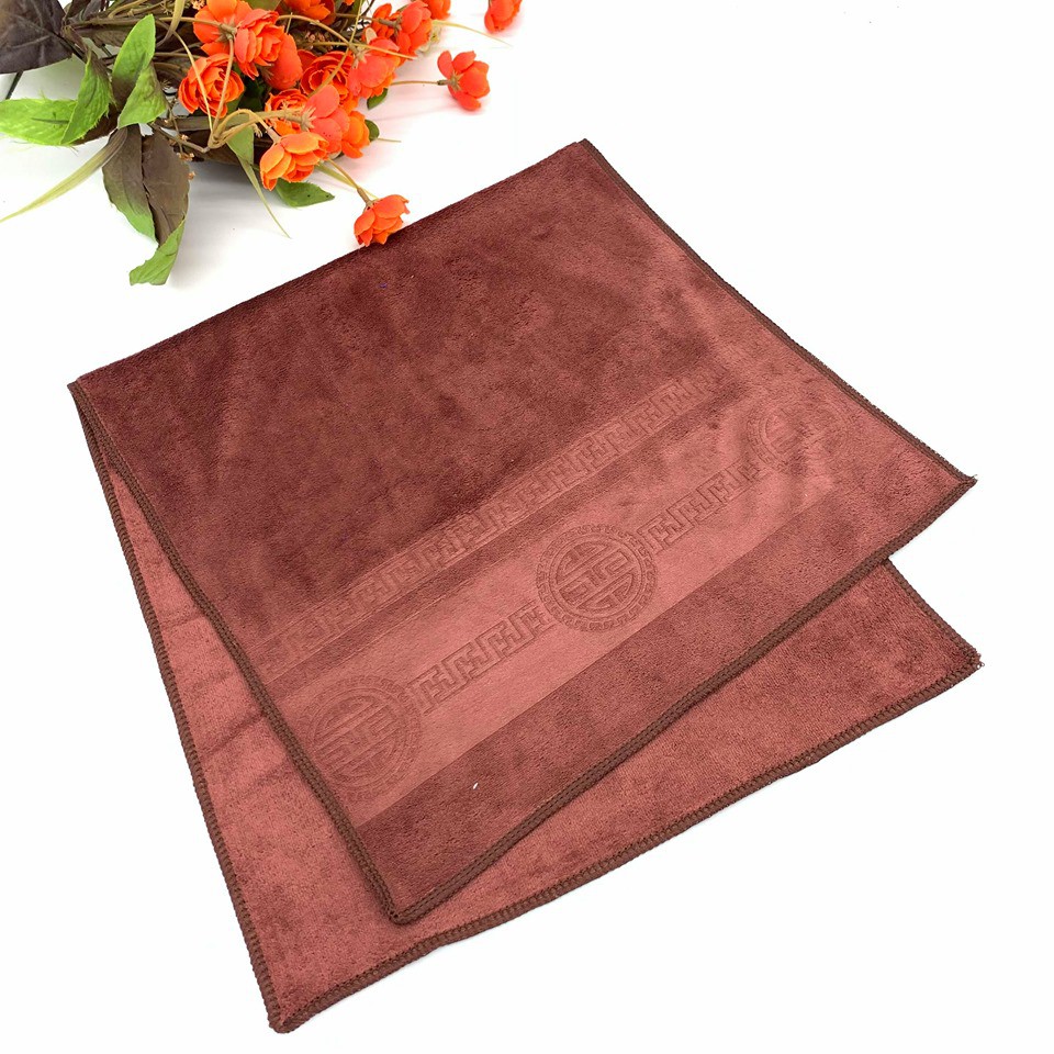 - Đây là khăn được dệt từ một loại sợi hóa học rất nhỏ gọi là microfiber. Sợi microfiber có kích thước chỉ bằng 1/100 sợi tóc. Vì vậy, khăn được dệt từ sợi microfiber sẽ có vô số những lỗ nhỏ. Nhờ những lỗ nhỏ này mà khăn lau từ sợi microfiber có tính hút nước rất tốt và khi vắt cũng sẽ khô rất nhanh.