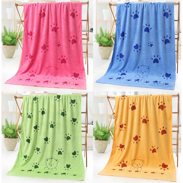 Khăn tắm cho bé in hình thù ngộ nghĩnh, cỡ vừa KT 35*75cm, siêu mềm, siêu thấm nước