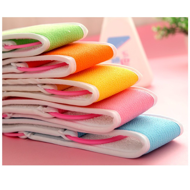 KHĂN TẮM 2 MẶT HỖ TRỢ CHÀ, CỌ LƯNG, Massage DA, TẨY TẾ BÀO CHẾT TIỆN DỤNG, NHIỀU MÀU, CÓ TAY CẦM BẰNG NHỰA Ở 2 ĐẦU- Khăn tắm chà lưng giúp bạn có thể dễ dàng chà xát và đưa dưỡng chất đến mọi nơi trên cơ thể, ngay cả phía sau lưng.