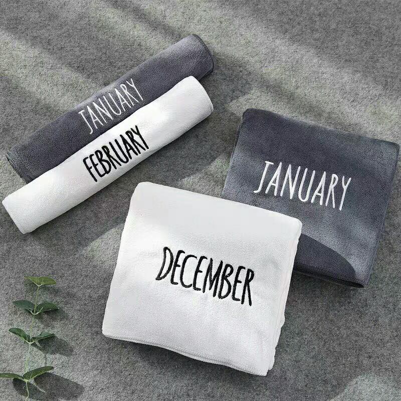 Khăn tắm xuất hàn in logo từ tháng 1 tới tháng 12 bằng tiếng anh kt 70x140cm.Khăn tắm có khả năng thấm hút nước cực tốt, đặc biệt chất lông siêu mềm siêu mịn cực kỳ thích hợp để dùng cho các bé thường có làn da mềm mịn nhạy cảm.