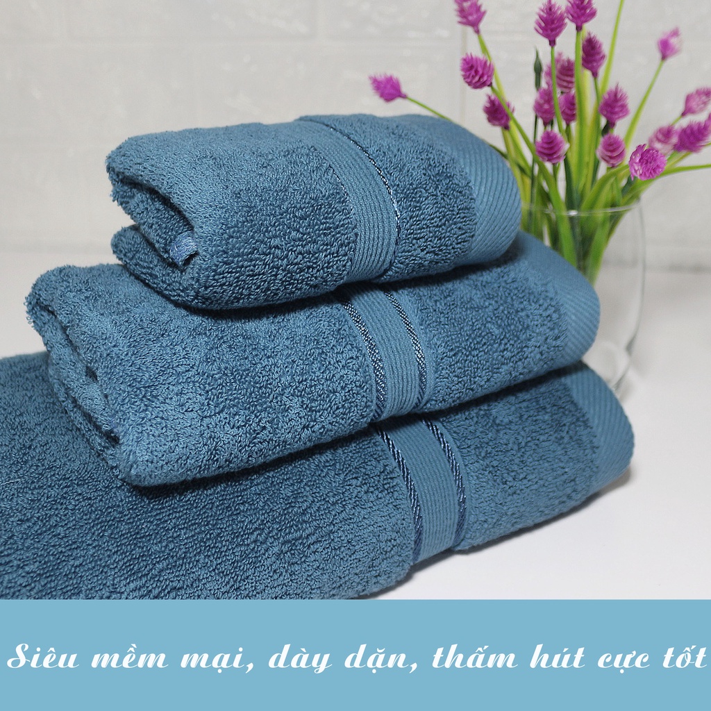 Khăn tắm cao cấp 100% cotton, Combo 3 chiếc dày dặn mềm mại thấm hút cực tốt_Khăn mặt Hanoitex