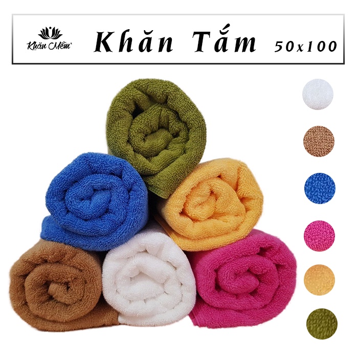 Khăn Tắm Cao Cấp 50x100cm Khăn Mềm 100% Cotton, Dày Dặn Mềm Mịn, Không Ra Màu, Không Sổ Lông, Thấm Hút Nước Tốt
