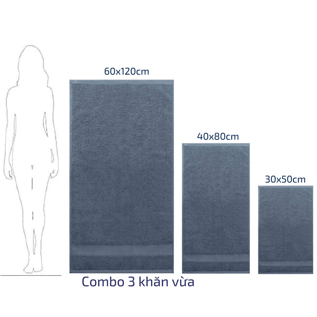Khăn Tắm, Mặt, Gội Combo 3 Cao Cấp Full Màu, Full Size, Không Phai, 100% Cotton Siêu Thấm – Kamys Towel