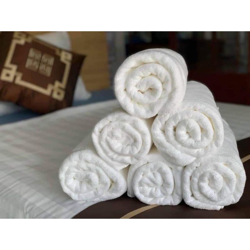 Khăn tắm cao cấp khách sạn size 70x140x500g, 100% sợi cotton màu trắng, siêu mềm mịn thấm hút nước