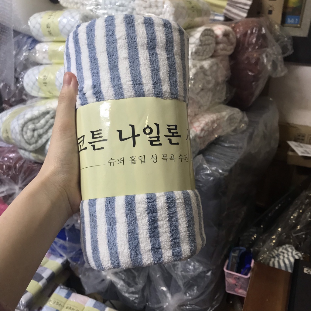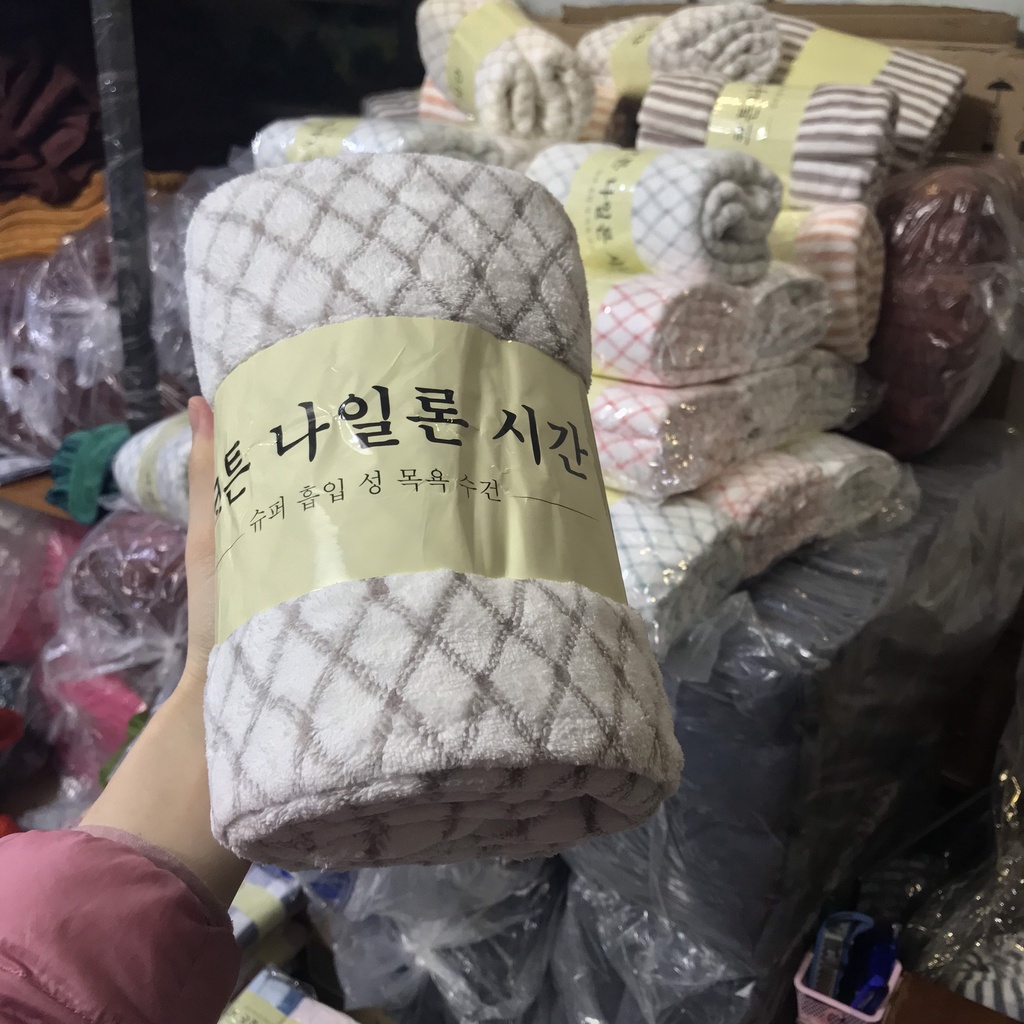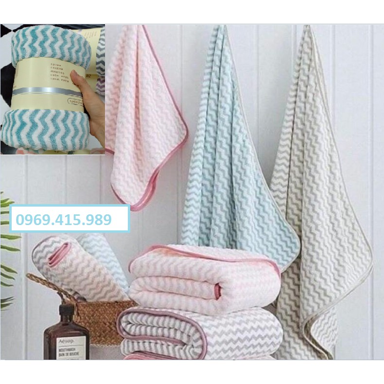 - Ưu điểm lớn nhất là khăn được thiết kế khổ lớn 70*1m4, tiện dụng cho bạn sử dụng vào mục đích khác như: