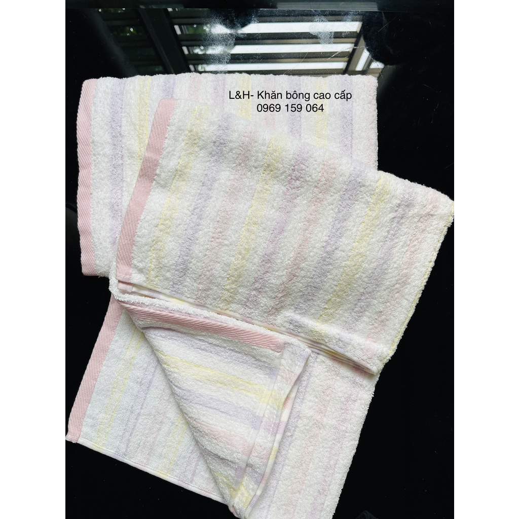 Khăn tắm dày Muji Organic, kẻ tăm, KT 70x140cm, Nặng 380g- Khăn tắm cotton từ chất liệu sợi vải bông mềm mịn, siêu mềm, không bị xù lông, không phai màu