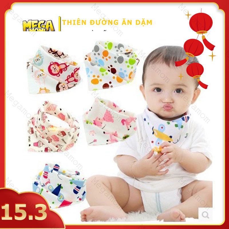 Khăn tam giác cotton thun in hình có cúc bấm- loại đẹp, yếm tam giác cho bé