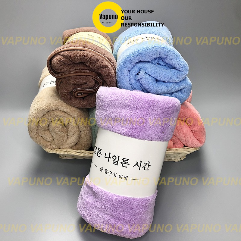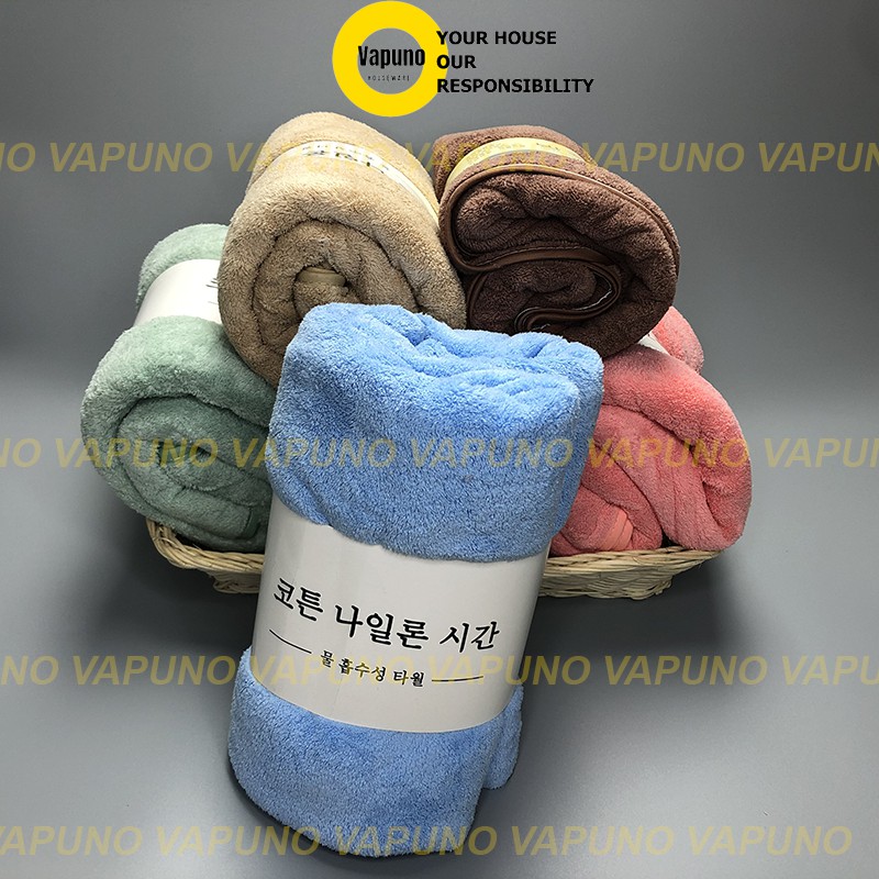 Khăn Tắm Hàn Quốc Lớn Lông Cừu 70x140cm To, Dày 300Gram Siêu Thấm Hút, Nhanh Khô Vapuno