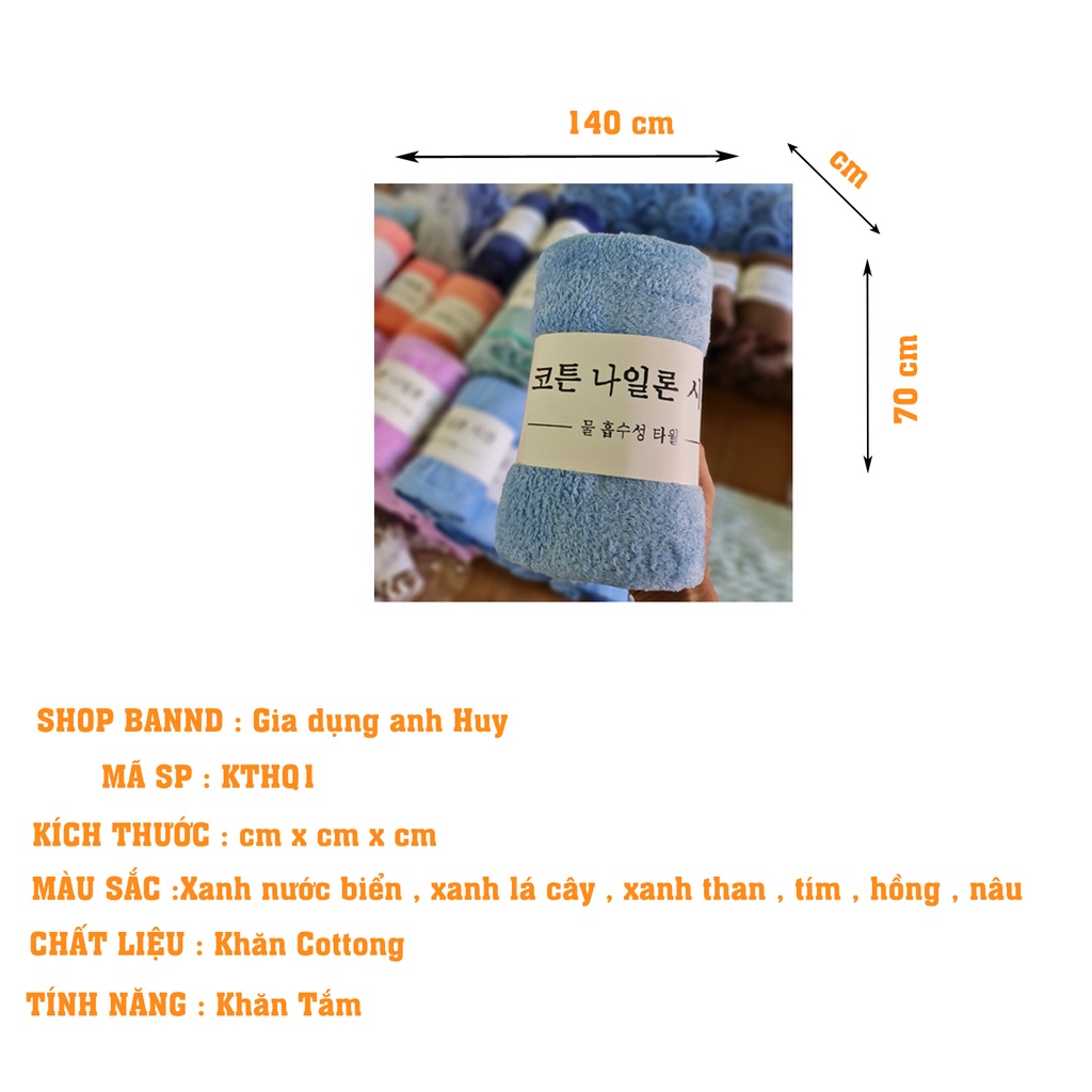 Khăn Tắm Hàn Quốc Cottong Mền Mại Loại To Gần 300g - Kích Thước 70 x 1m4