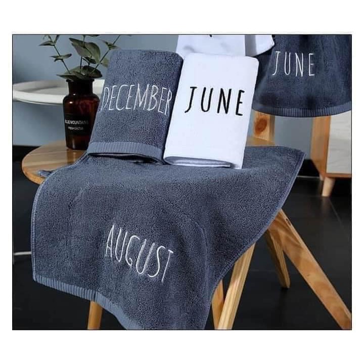 KHĂN TẮM THÊU LOGO THÁNG BẰNG TIẾNG ANH