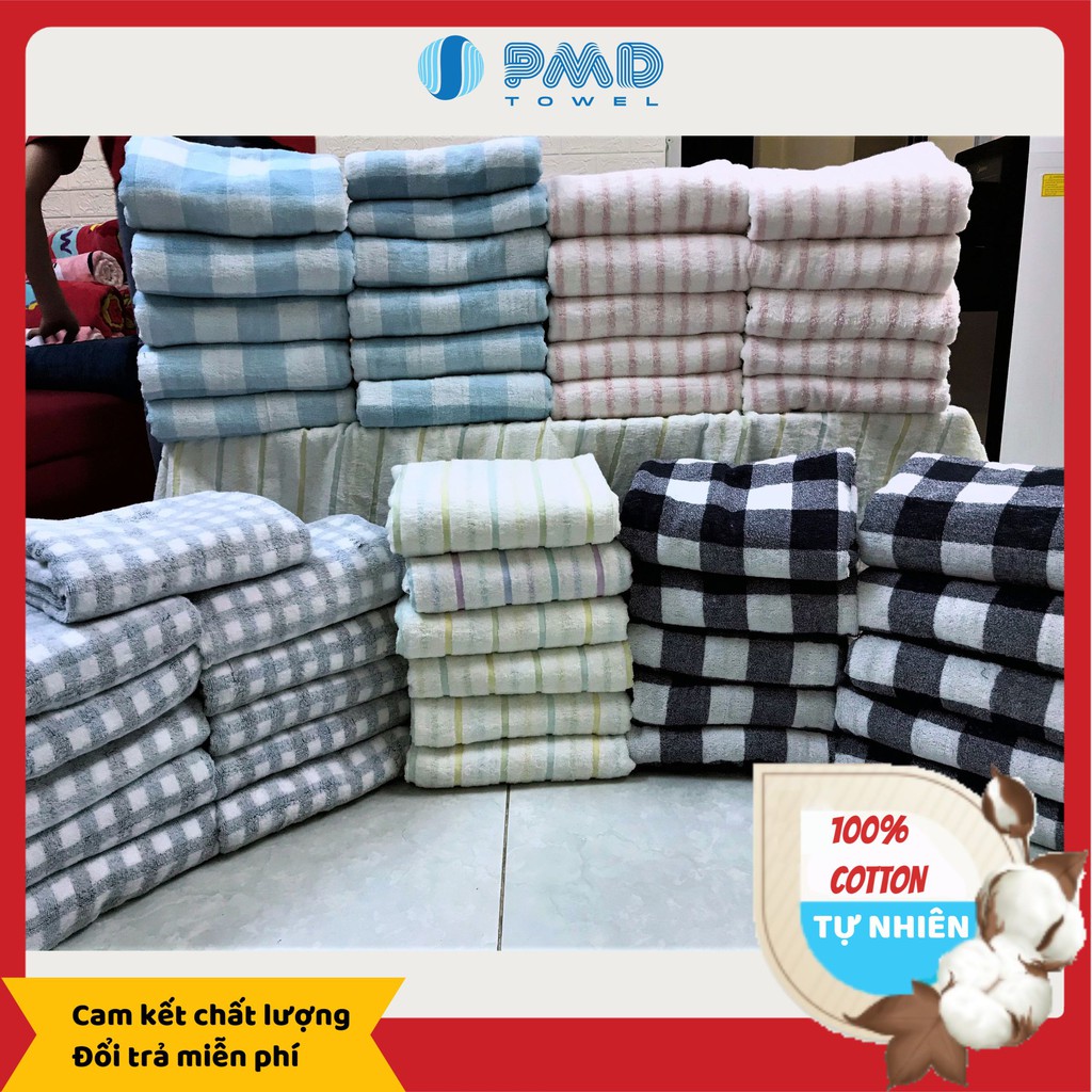 Khăn tắm kẻ gia đình cotton cao cấp xuất Nhật cực mềm êm nhẹ thấm nước tốt nhanh khô không sổ lông phai màu