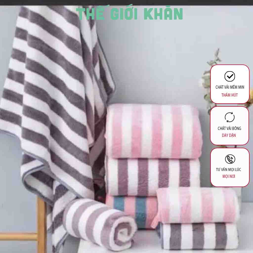 Giới thiệu Khăn tắm kẻ xuất Hàn 70*140 cm, sang xịn mịn