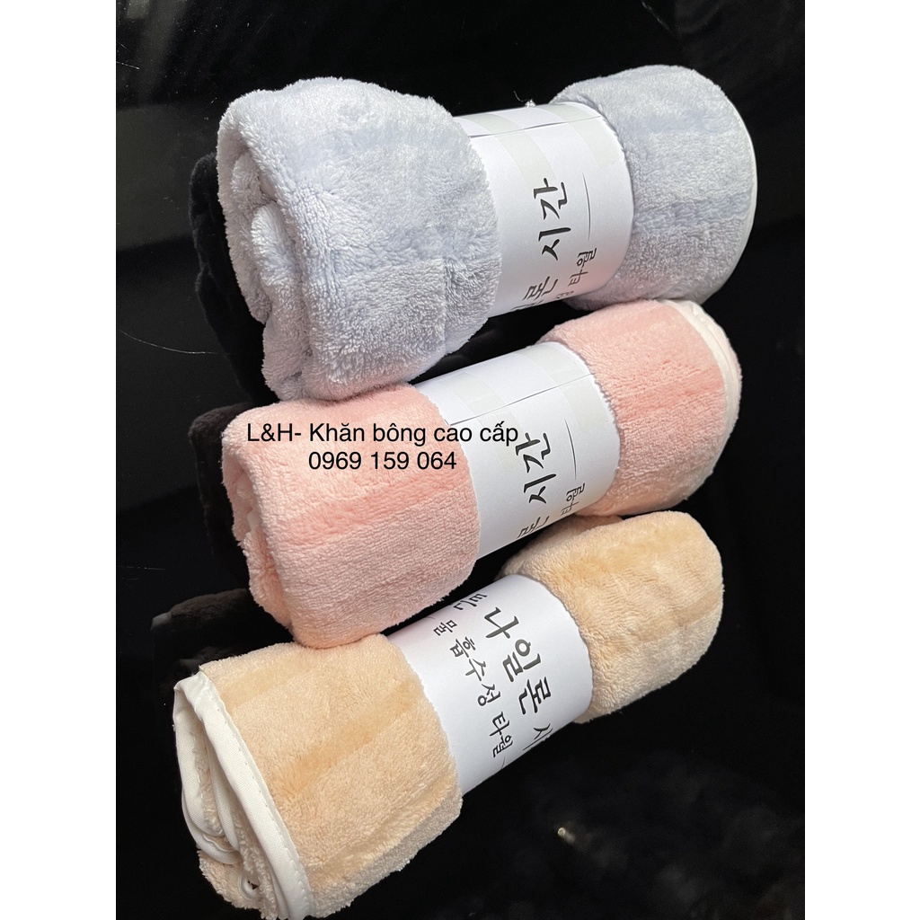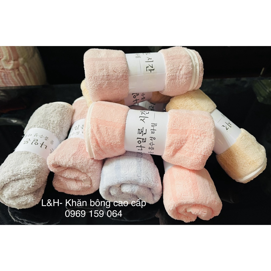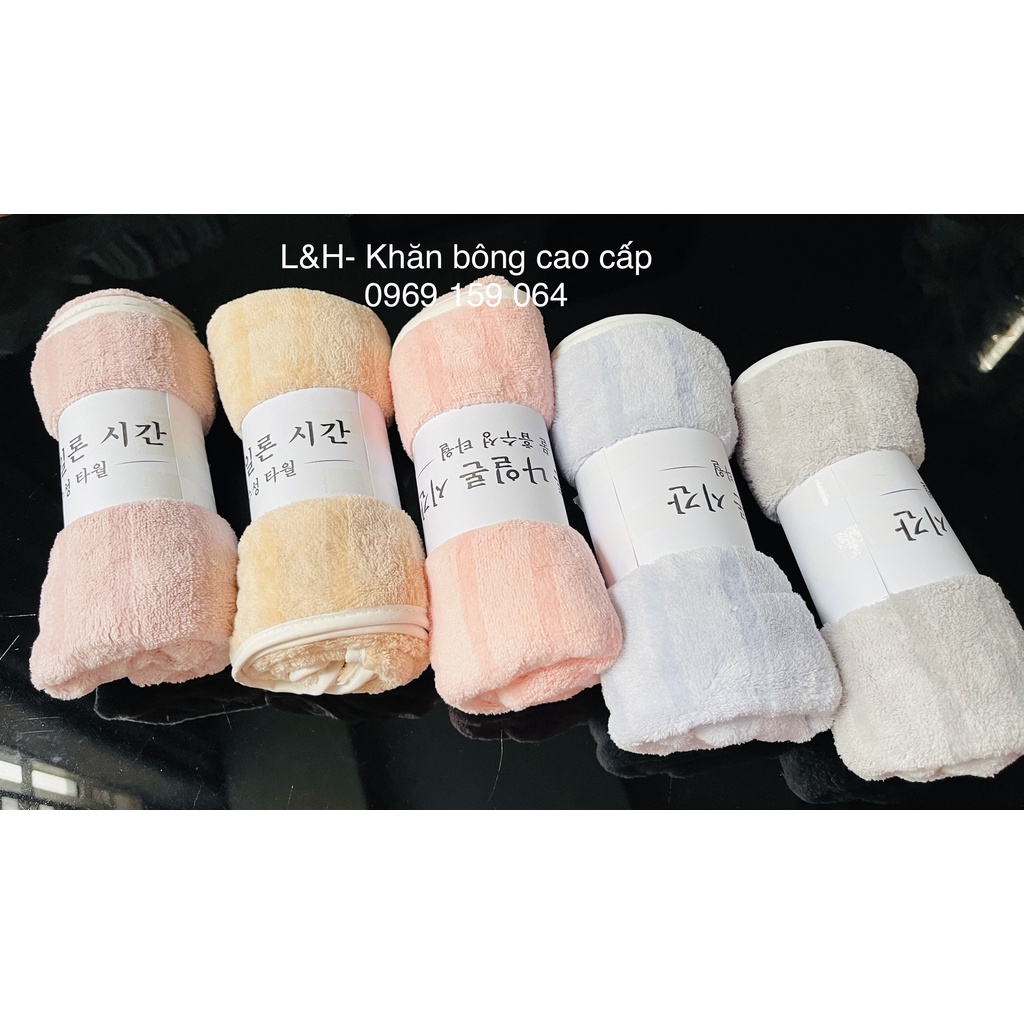 Khăn tắm, khăn lau đầu, lông cừu cao cấp, Kẻ sọc nổi, KT 35x75cm- Không chứa chất làm trắng, màu nhuộm độc hại, an toàn cho da