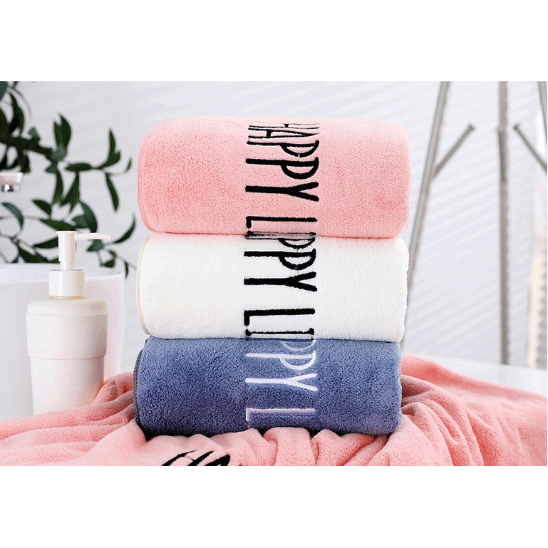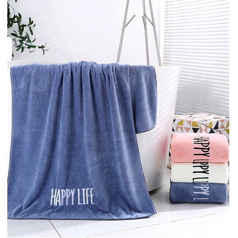 Nhà cửa & Đời sống > Đồ dùng phòng tắm > Khăn mặt, khăn tắm, áo choàng tắm > Khăn tắm || Khăn tắm lau đầu rửa mặt xuất nhật 100% cotton thêu chữ Happy Life thấm hút nước tốt chất vải mềm mịnCòn hàng