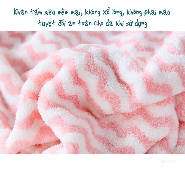 Khăn tắm lông cừu cỡ đại xuất Hàn 70x140cm Kẻ sọc siêu dày, mềm mịn, thấm hút cực tốtChất vải 100% sợi Mirofiber - Lông dài - Mềm - Mịn - Lau khô nhanh và bền gấp 6 lần so với khăn tắm thường
