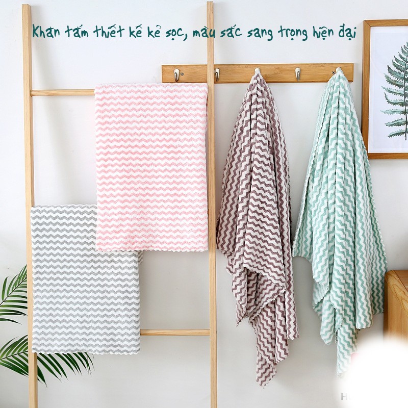 Khăn tắm lông cừu cỡ đại xuất Hàn 70x140cm Kẻ sọc siêu dày, mềm mịn, thấm hút cực tốt