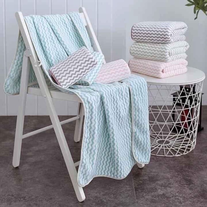 + Khăn Tắm nhanh chóng thấm hút nước và chăm sóc bề mặt da hiệu quả mà không rát ngứa, tổn thương.