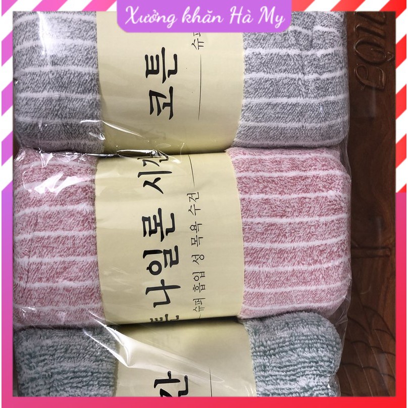 Khăn tắm lông cừu Hàn Quốc kẻ tăm KT 70 x 140cm ⚡HÀNG LOẠI 1⚡ Khăn bông lông cừu siêu thấm hút, mềm mại