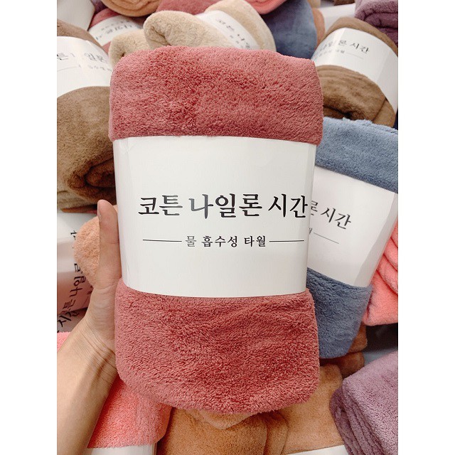 Khăn tắm Hàn Quốc được dệt từ 100% cotton độ thấm hút cực tốt và sợi lông mềm mịn khi giặt phơi khô sẽ không bị thô ráp như các loại khăn thường ạ