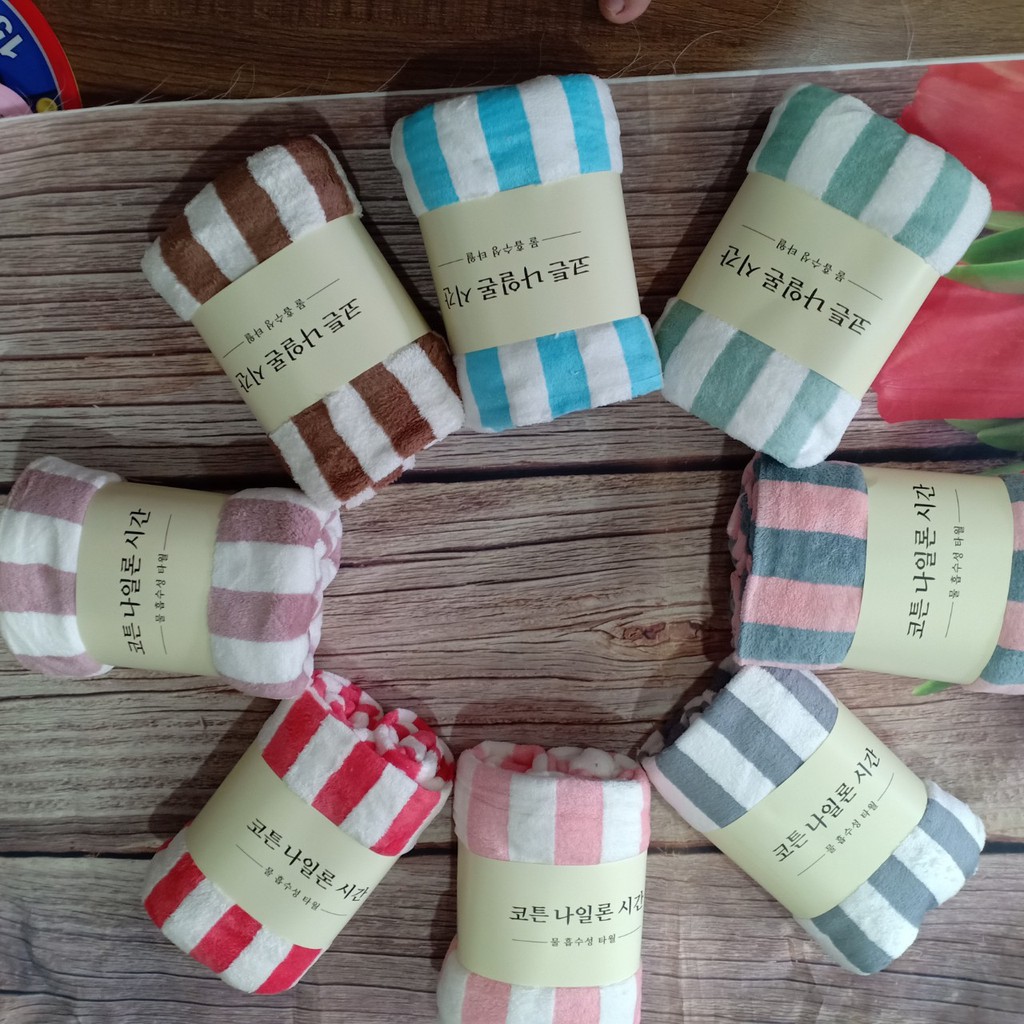 Khăn tắm lông cừu Hàn Quốc cao cao cấp 70x140cm 😍 chất bông siêu mềm thấm nước cực tốt thích hợp quấn người cho em béKhăn tắm lông cừu nanomex kẻ sọc.