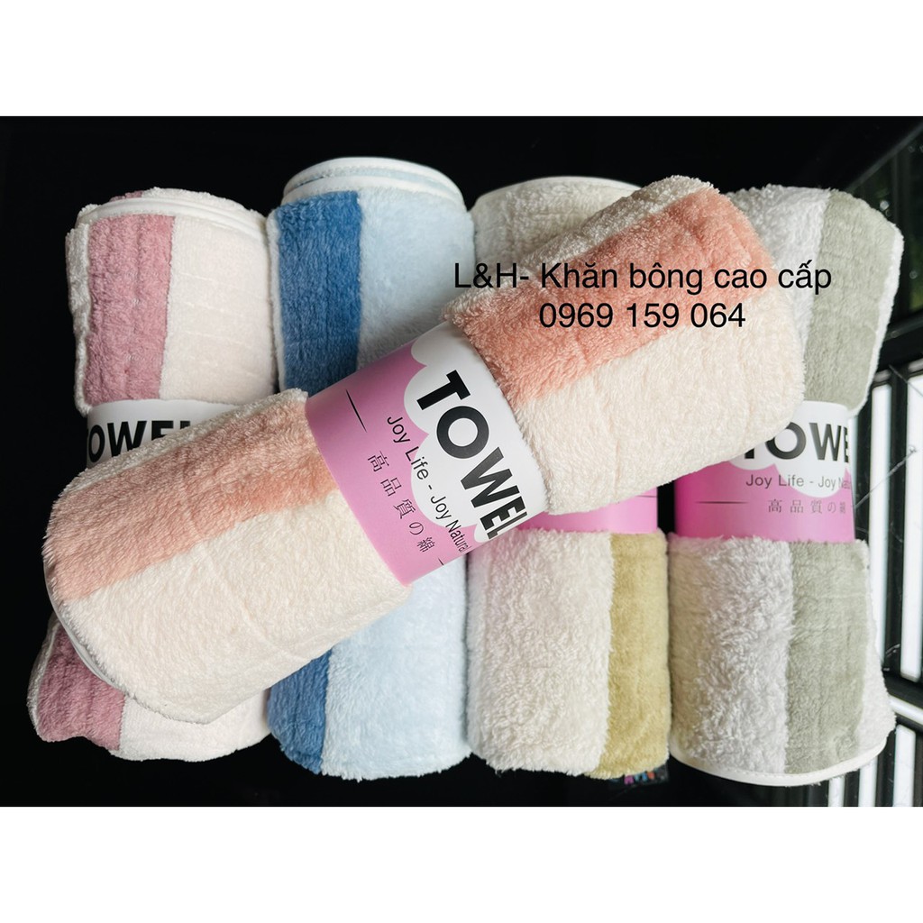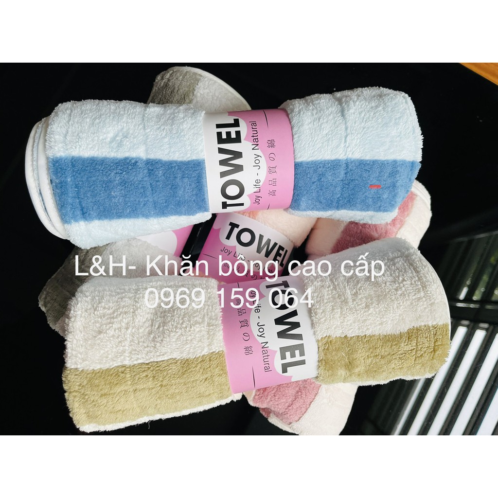 Khăn tắm lông cừu,kẻ viền to, KT 50x100cm