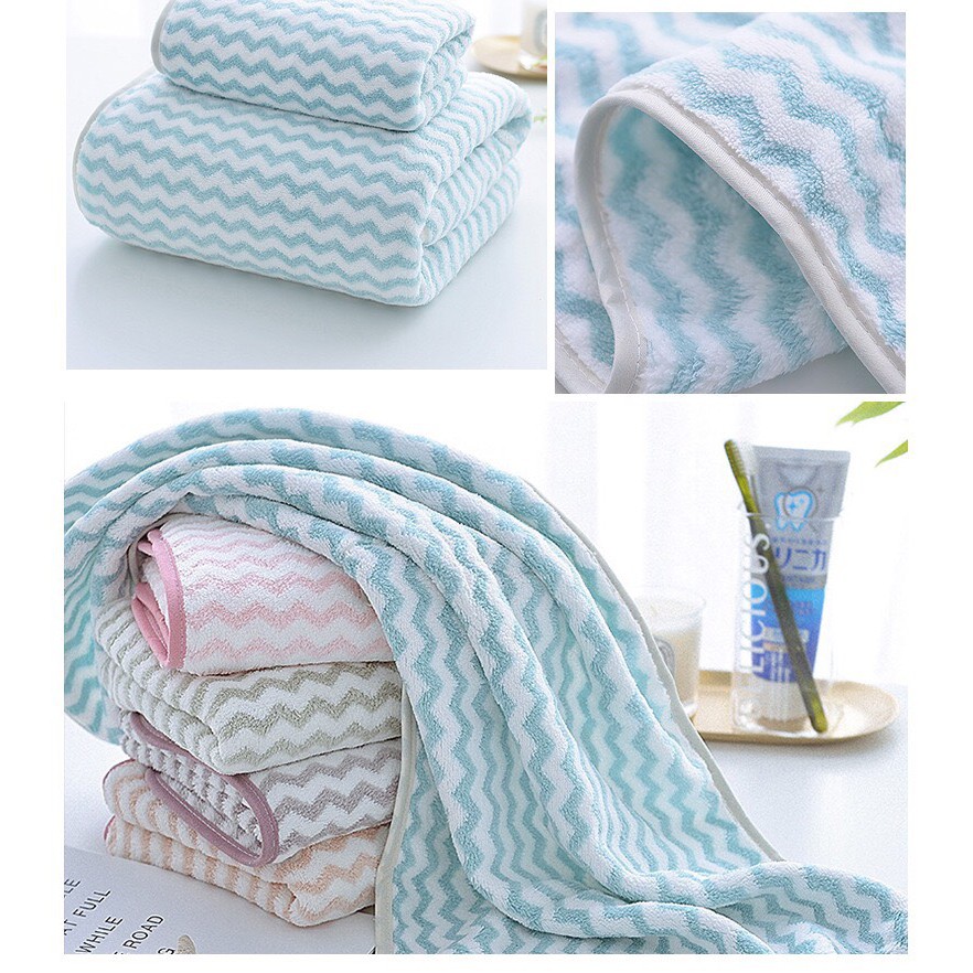 Nhà cửa & Đời sống > Đồ dùng phòng tắm > Khăn mặt, khăn tắm, áo choàng tắm > Khăn tắm || Khăn tắm lông cừu nhím mềm mịn họa tiết sọc hàn quốc 35x75CmCòn hàng