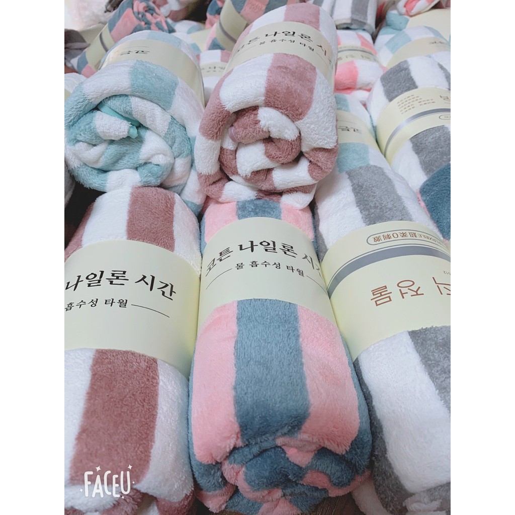 Nhà cửa & Đời sống > Đồ dùng phòng tắm > Khăn mặt, khăn tắm, áo choàng tắm > Khăn tắm || Khăn tắm lông cừu size lớn 70x140cm. Mềm mịn họa tiết sọc hàn quốc - Trung SọcCòn hàng