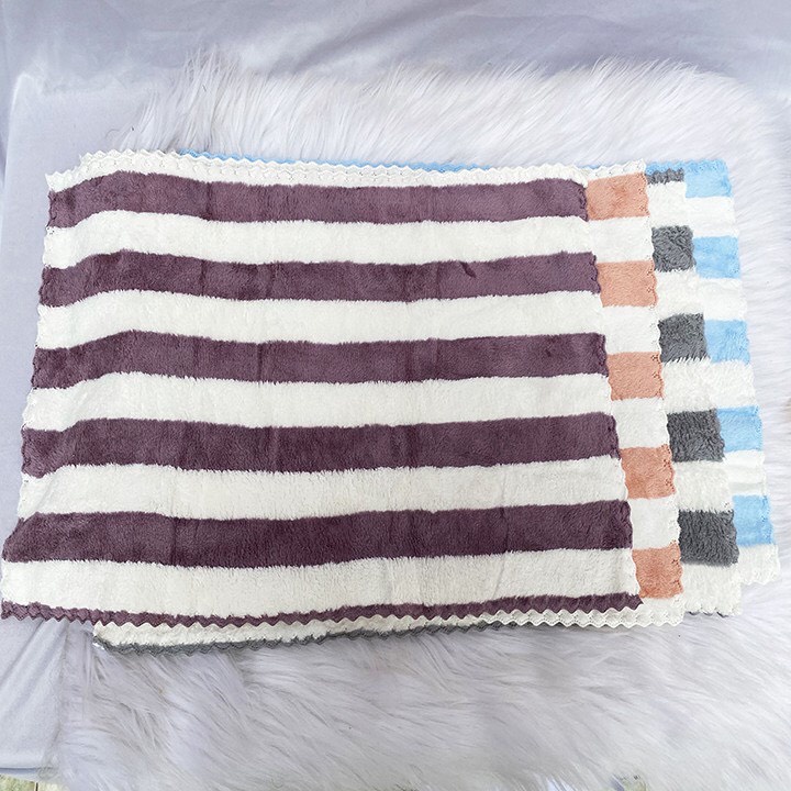 Khăn tắm lông cừu sọc Hàn Quốc 2 mặt dày đẹp mềm mịn