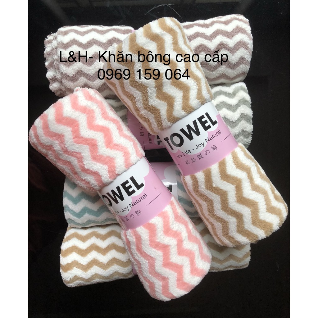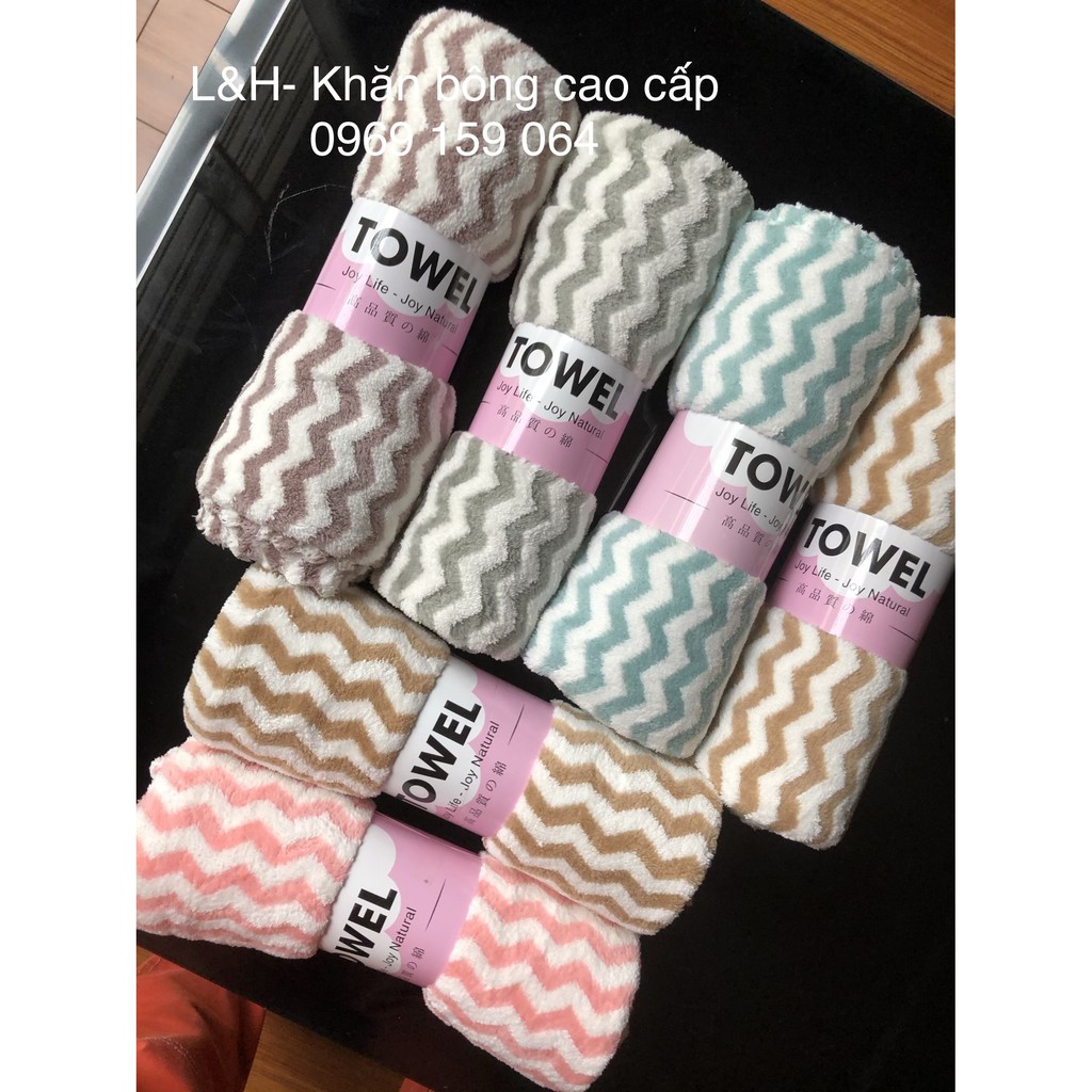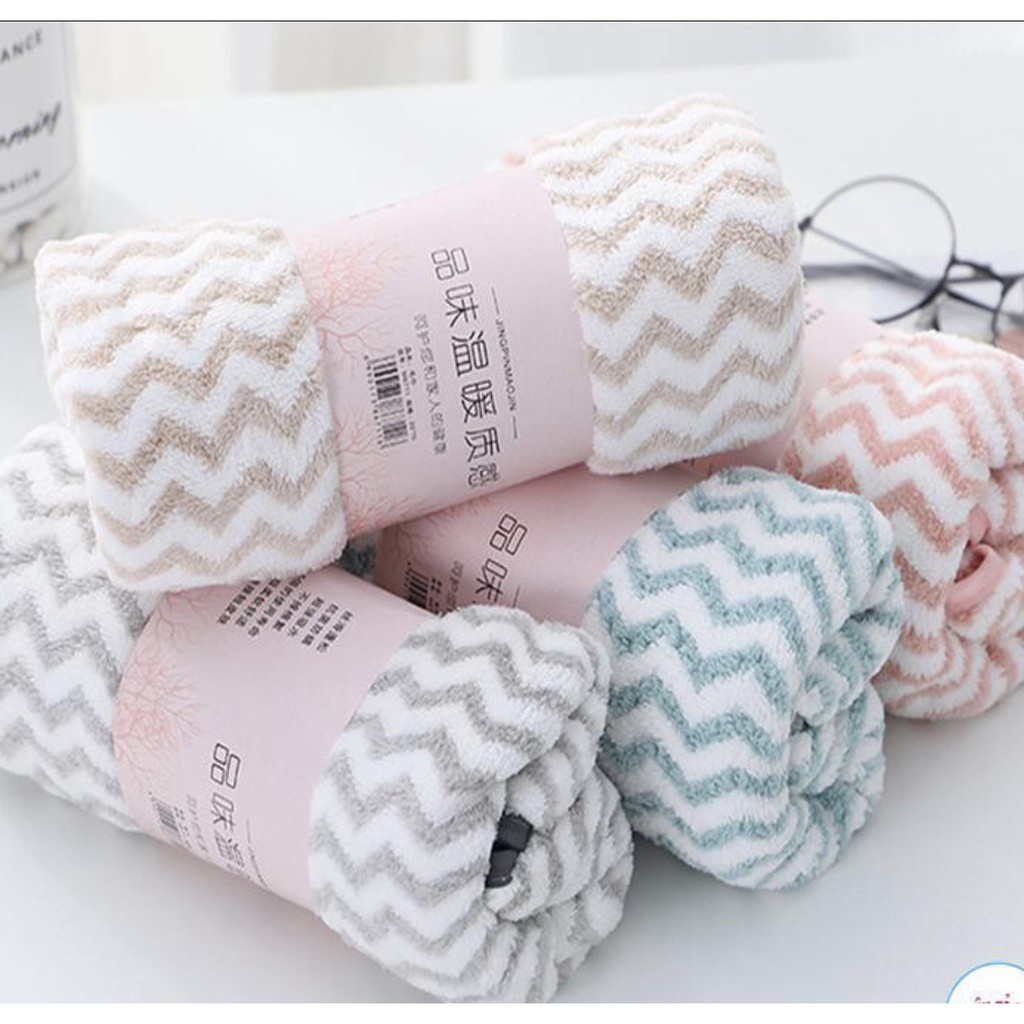 Nhà cửa & Đời sống > Đồ dùng phòng tắm > Khăn mặt, khăn tắm, áo choàng tắm > Khăn tắm || Khăn tắm lông cừu xuất hàn, kẻ sóng nhỏ, KT 50x100cmCòn hàng