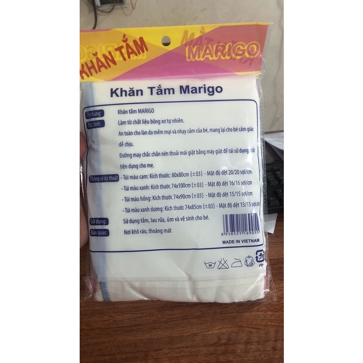 Nhà cửa & Đời sống > Đồ dùng phòng tắm > Khăn mặt, khăn tắm, áo choàng tắm > Khăn tắm || Khăn Tắm MARIGO Kháng Khuẩn Cho BéCòn hàng