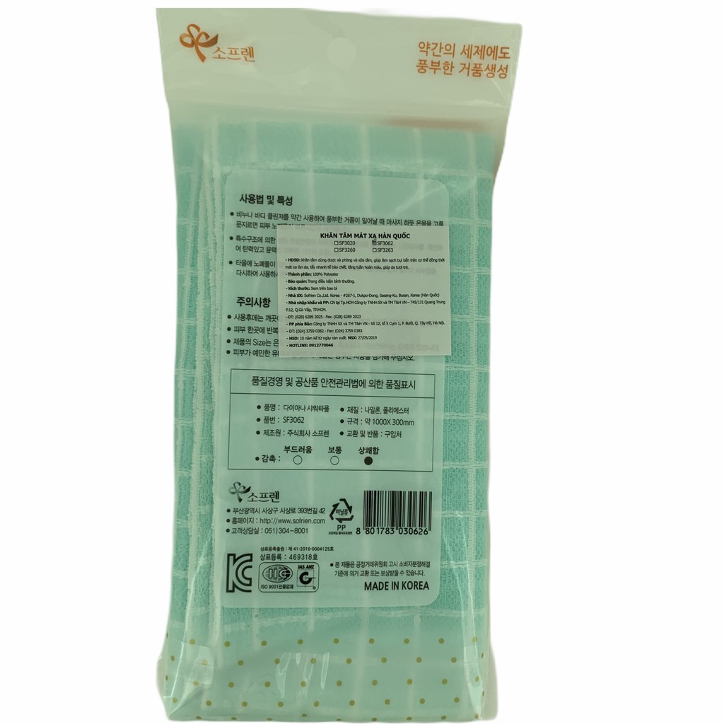 Khăn tắm mát xa hàn quốc 1000x300mm SF3062