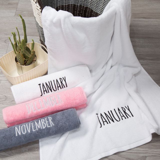 Khăn tắm thêu các tháng trong năm cực dày đẹp thấm hút tốt. Kích thước 70x140cm.Giá tại xưởng liên hệ 0967557246