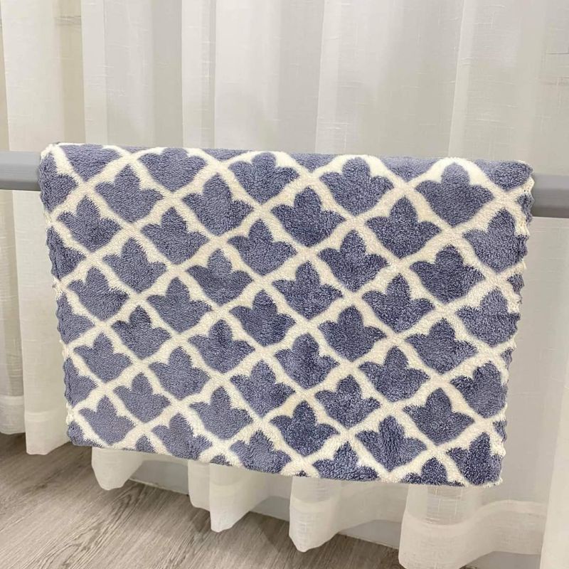 Khăn tắm nhỡ, khăn gội đầu lông cừu 34 x 75 cm họa tiết hình lá cây
