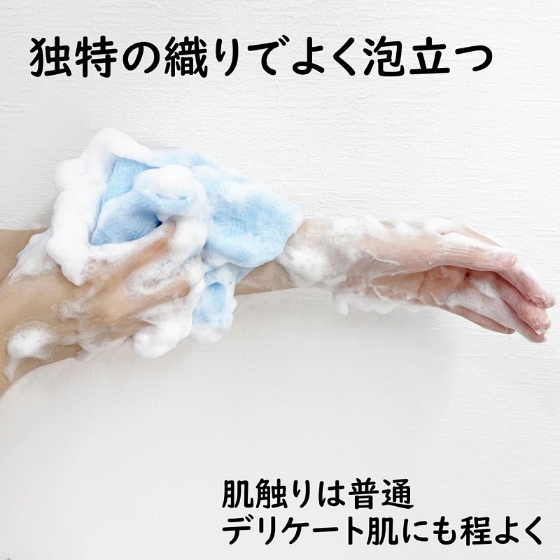 ○ Chất liệu sợi ultra-fine nylon 66 kích thích da ở mức độ vừa phải đồng thời loại bỏ bụi bẩn trên da một cách nhanh chóng