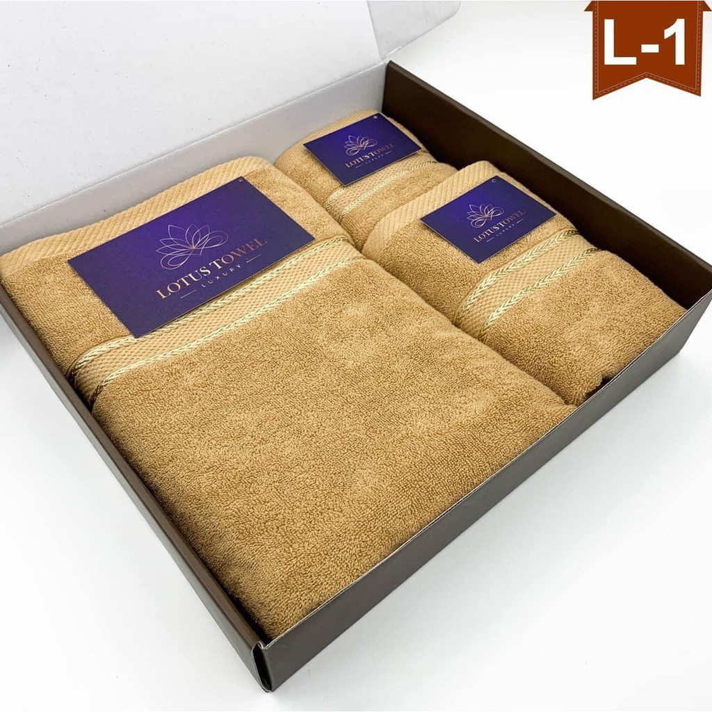 Khăn tắm siêu thấm nước kháng khuẩn EU - Lotus Towel FULLBOX Combo 3 chiếc nhiều kích cỡ cao cấp