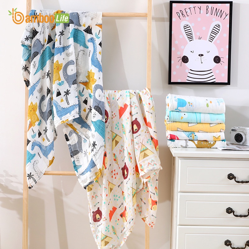 Khăn tắm sợi tre 2 lớp Bamboo kích thước 105x120 cm siêu mềm họa tiết đáng yêu cho bé