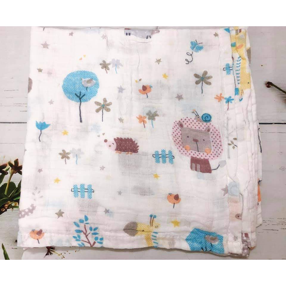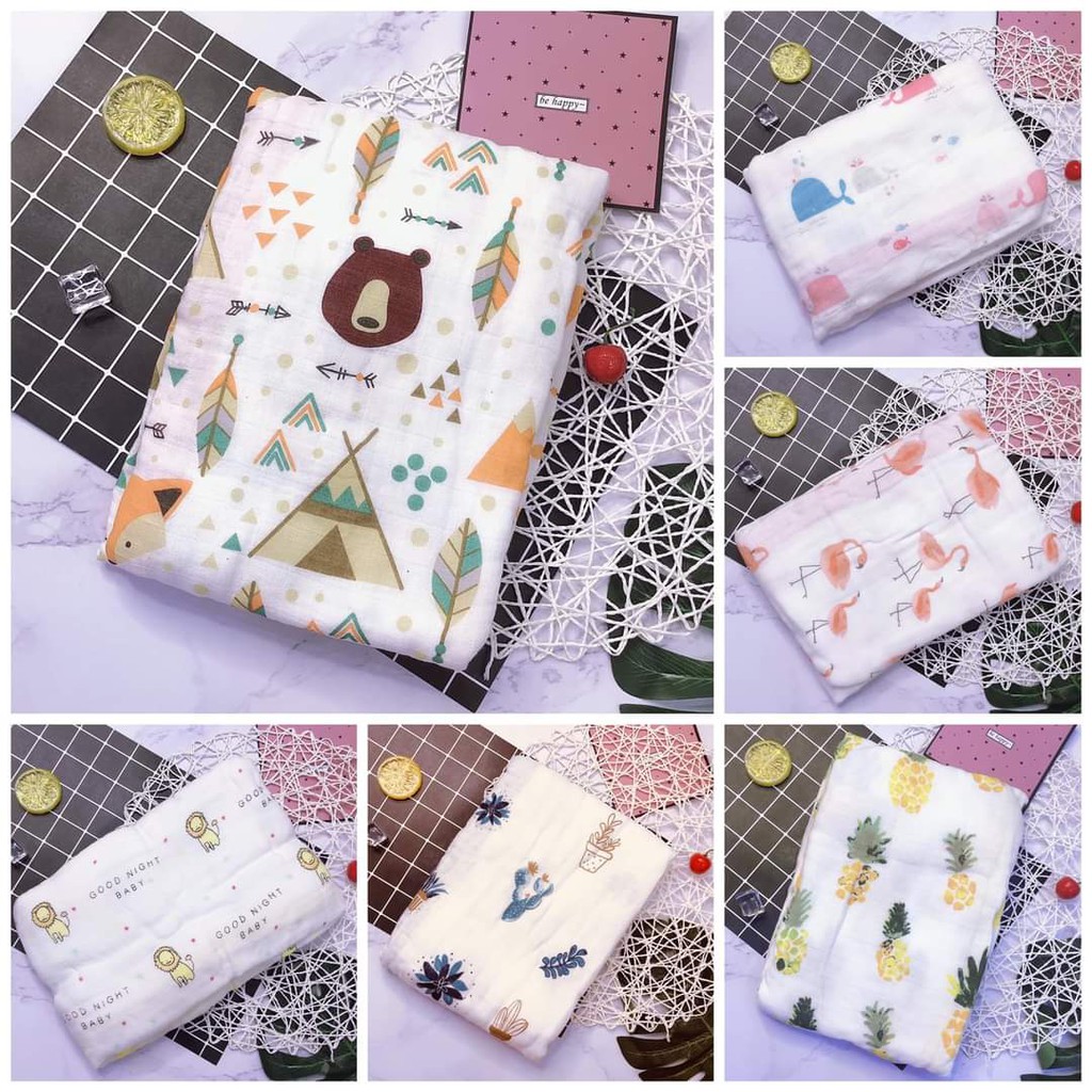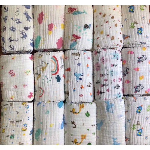 KÍCH THƯỚC: 120 X 120 cmKhăn Tắm Xô 6 lớp Sản phẩm được làm từ chất liệu vải xô mềm mịn, êm ái, thấm hút rất tốt,dễ giặt,mau khô. Không xù lông, không sổ chỉ sau thời gian sử dụng. Bề mặt mịn màng, mềm mại, sau khi sử dụng không bị khô cứng, thô ráp, không gây trầy xước,tổn hại đến làn da của bé. Màu sắc,họa tiết,đáng yêu,ngộ nghĩnh,phù hợp với cả bé gái,bé trai. Có thể làm chăn đắp điều hòa cho bé.