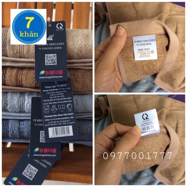 - Sản phẩm được thiết kế với những đường sóng uốn lượn trên viền khăn, mang thương hiệu khăn bông đến từ Hàn Quốc – Songwol.