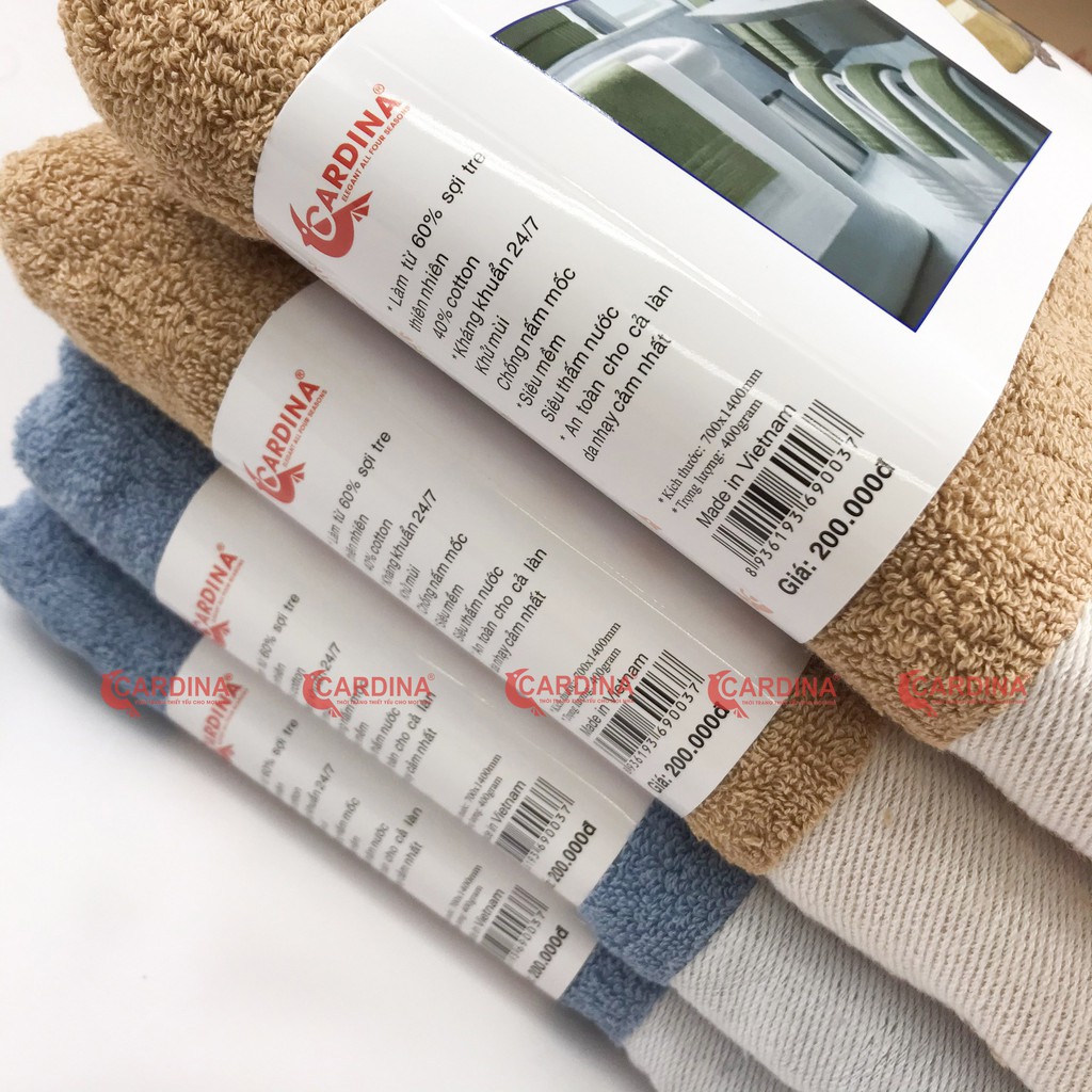 Khăn Tắm Sợi Tre 𝐂𝐀𝐑𝐃𝐈𝐍𝐀 Nhật Bản Siêu mềm - Siêu thấm nước - Kháng khuẩn 24/7 Khổ lớn 0.7*1.4m