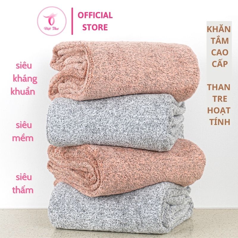 Khăn tắm than tre hoạt tính cỡ lớn, khăn lau lông mềm mịn kháng khuấn thấm hút tốt 140x70 cm - Việt thư