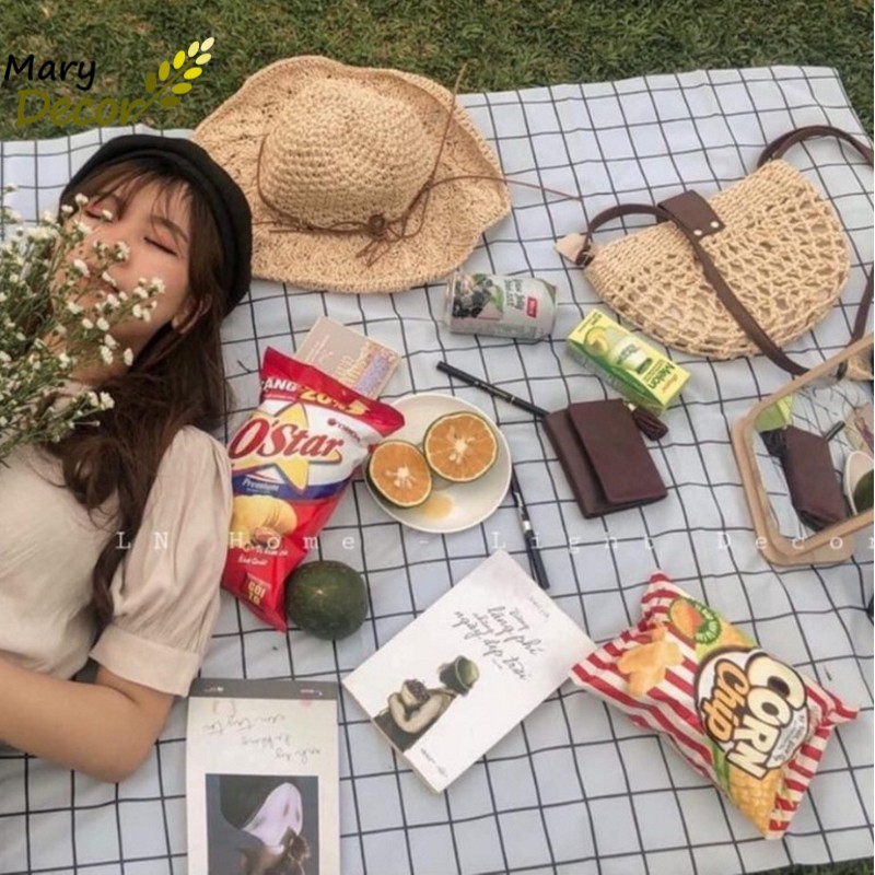 Khăn tấm trải du lịch chụp ảnh picnic, trải bàn ăn kẻ caro bằng nhựa PVC chống thấm nước gấp gọn tiện dụng - Sỉ inbox