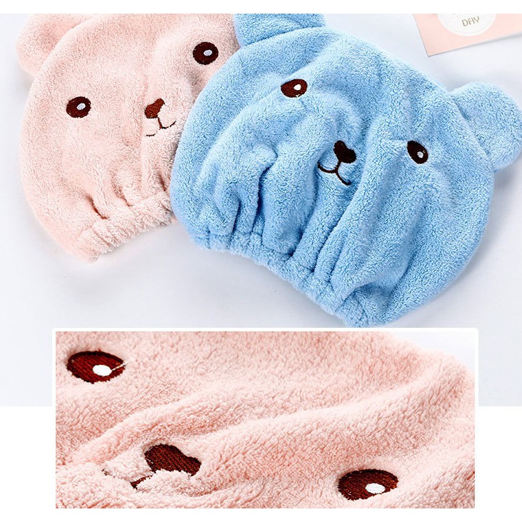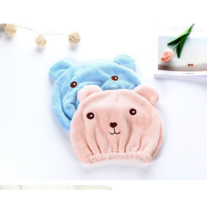 Khăn tắm trùm đầu, khăn ủ tóc, khăn làm khô tóc hình gấu
