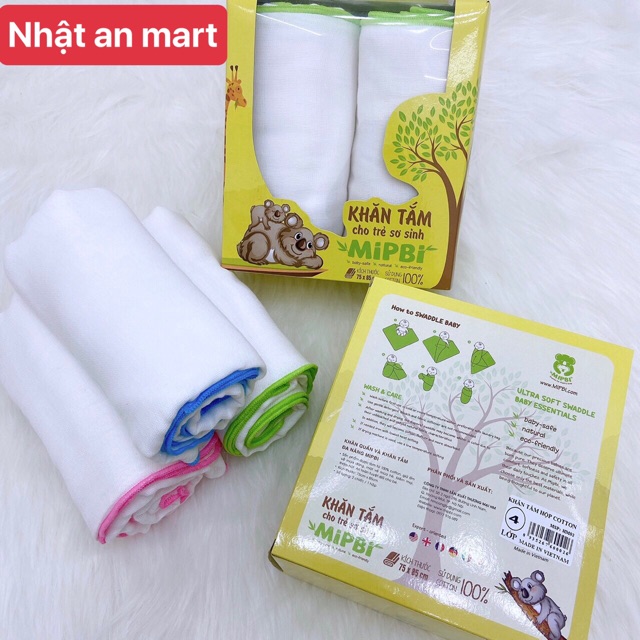 Khăn tắm xô cao cấp mipbi hộp 2 chiếc