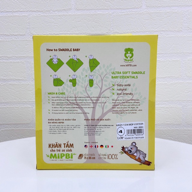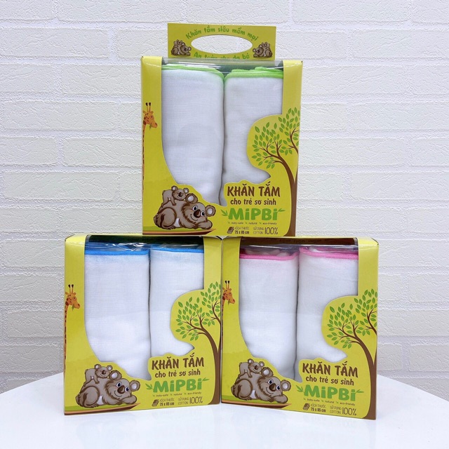 Khăn tắm hộp cotong Mipbi 2 chiếc / hộpSản xuất tại Công ty TNHH SX TM HM
