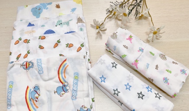 - Chất vải xô như khăn tắm xô trơn 4 lớp nhưng mà màu yêu lắm các Mom nhé! Hình in sắc nét chẳng khác gì hình in của khăn aden ạ!
