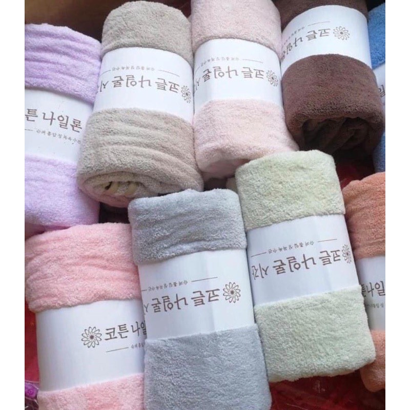 ✔️khăn tắm Hàn Quốc được dệt từ 100% cotton độ thấm hút cực tốt và sợi lông mềm mịn khi giặt phơi khô sẽ không bị thô ráp như các loại khăn thường ạ